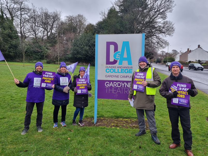 Dundee and Angus EIS-FELA have led a dynamic campaign which has gathered the support of students, staff and members of the public through building support for a petition which gathered more than 8,000 signatures through engaging with staff and students in college, utilising local social media pages, and through publicity stunts like their community walk from the Abroath campus of Dundee and Angus College to the Gardyne campus.
