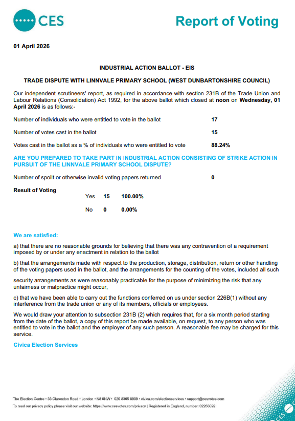 Linnvale Primary Industrial Action Ballot