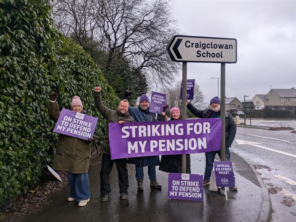 EIS members at Craigclowan School near Perth will continue with their fifth day of strike action as a dispute over cuts to the staff pension scheme continues.